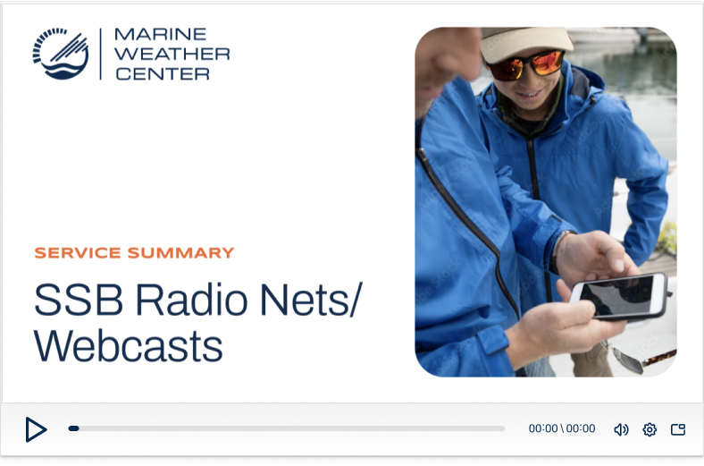 Vessel-specific weather forecast & routing advice via SSB Voice Radio or simultaneous Internet Webcast. Nets are conducted 6 days a week, Monday through Saturday, and twice each day (morning and evening).
